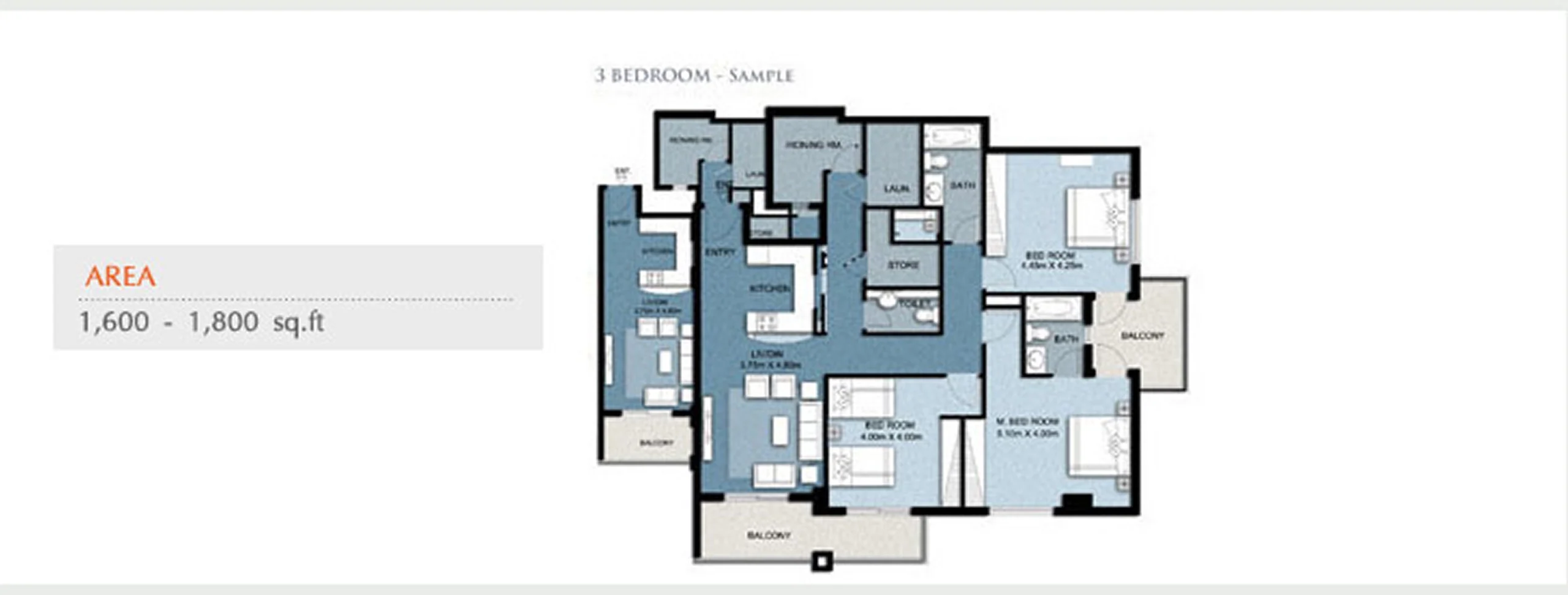 Three Bedroom Apartments are designed with large living areas and spacious bedrooms to comfortably accommodate the whole family.