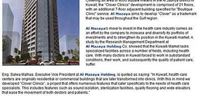Eng. Salwa Malhas, Executive Vice President at Al Mazaya Holding, is quoted as saying: “In Kuwait, health care centers are originally residential or commercial buildings that are later transformed into clinics. With this in mind we developed “Clover Clinics”, a project that offers numerous features that cater specifically to the needs of health care specialists. This includes features such as sound isolation, sterilization facilities, quality flooring and wide elevators that ease the movement of both doctors and patients.”