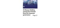 Al Mazaya occupied an advanced position among 233 firms, the ranking of which is based on corporate governance metrics that gauge compliance with accountability, transparency, disclosure and commitment to submission of governance and transparency reports within the legal grace period set by CMA.