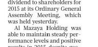 Al Mazaya’s General Assembly approves 7 per cent cash dividend to shareholders, for 2015