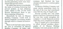 Mr Al Nafisi concluded by thanking everyone involved in Al Mazaya Holding Company for their hard work in 2013. He said the company had finished the year in a strong position from which to capitalise on the possibilities and opportunities of the future.
