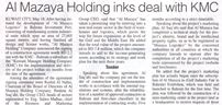 Among the attendants of the agreement signing ceremony were Rashid Al Nafisi, Chairman of the Board of Directors of Al Mazaya Holding Company, Ibrahim Al Saq’abi, the Group CEO, heads of sectors represented by Eng. Salwa Malhas, chief of the Business and Marketing Development Sector, and Dr Abdulaziz Jarkas, chief of the Project Development Sector. Representing KMC, the agreement ceremony was attended by Eng. Mohammad Al Shalfan, General Manager, and Abdullah Al Batel, Deputy General Manager for Human Resources and Supporting Services, Eng. Suleiman Al Asaker, Manager of the Business Development,