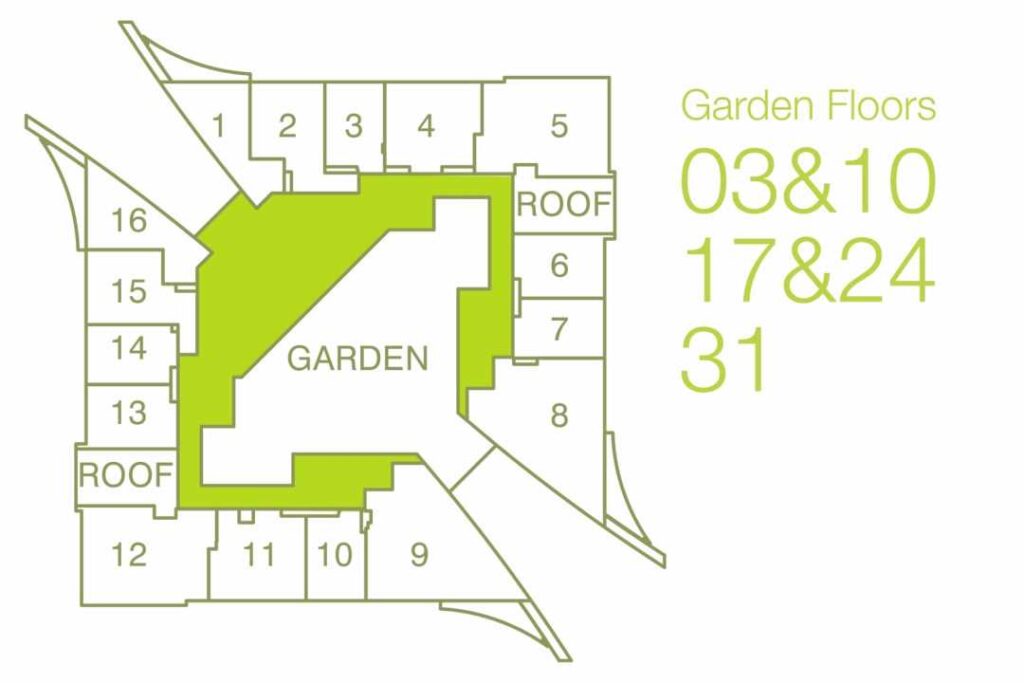 Nine exquisite gardens punctuate the ascending floors, each with its own distinct character, lighting, design and landscaping. Nestled between robust stone buttresses, the gardens are air-conditioned to offer a serene new perspective to modern living. The crowning glory of Sky Gardens is the Square Garden – a roof-top masterpiece of nature and lighting, an emerald beacon visible across the city from 36 floors up. Sky Gardens, without doubt, reinvents fine living in Dubai.